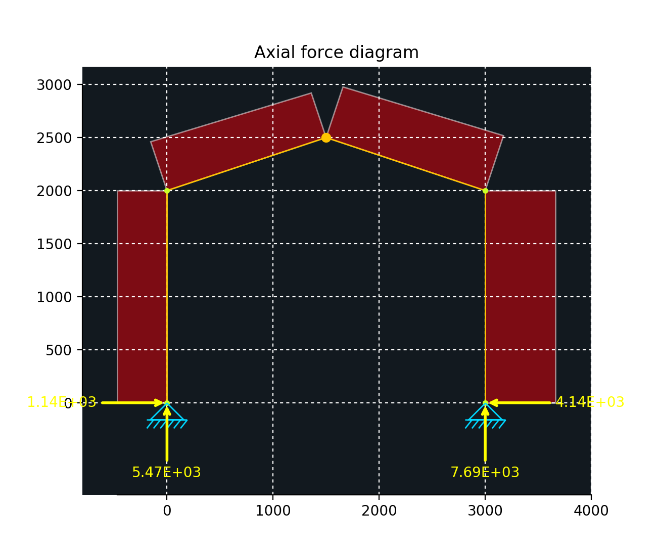 ax3 = disp.plot_internal_forces(ax=ax3, result=res, component='axial')